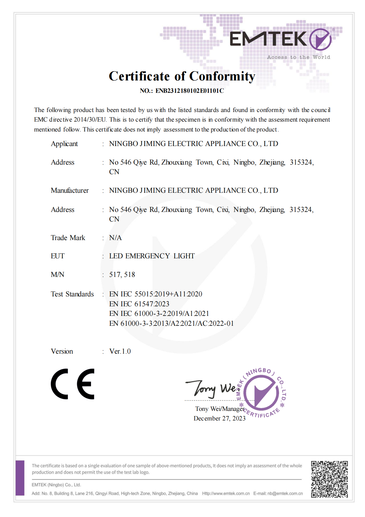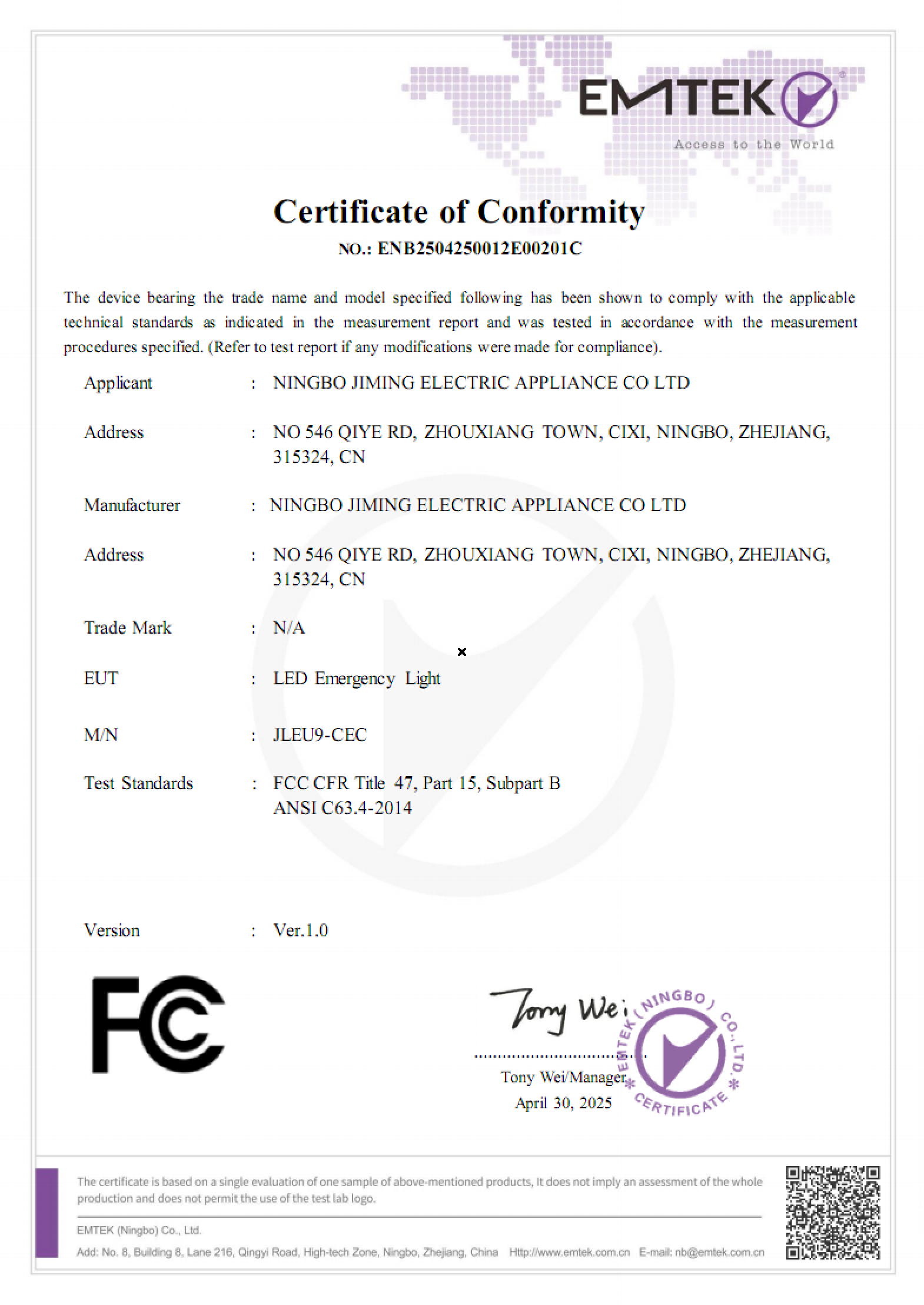 Ningbo JIMING Electric Appliance Co., Ltd.